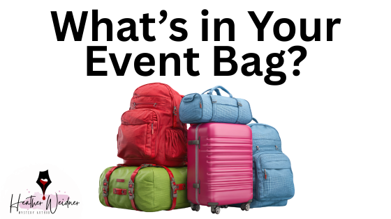/It’s always a good idea to have a bag with some emergency or needed supplies for your book events. Here are some of the things that I pack.